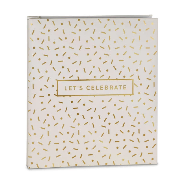 This fun photo album featuring a gold confetti design and celebratory message on a white laminated cover is the perfect way to commemorate your party pics and mementos from a special occasion including milestone birthdays and anniversaries, weddings, graduation and more. The expandable, post-bound format allows you to add pages so you can customize it to fit your needs.