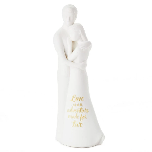Celebrate the adventure of love with this sweet Joanne Eschrich figurine of a couple in an embrace, inscribed with a message in gold ink. A beautiful way to honor a newlywed couple or a milestone anniversary, this statue is sure to be cherished by a couple with their own special love story.