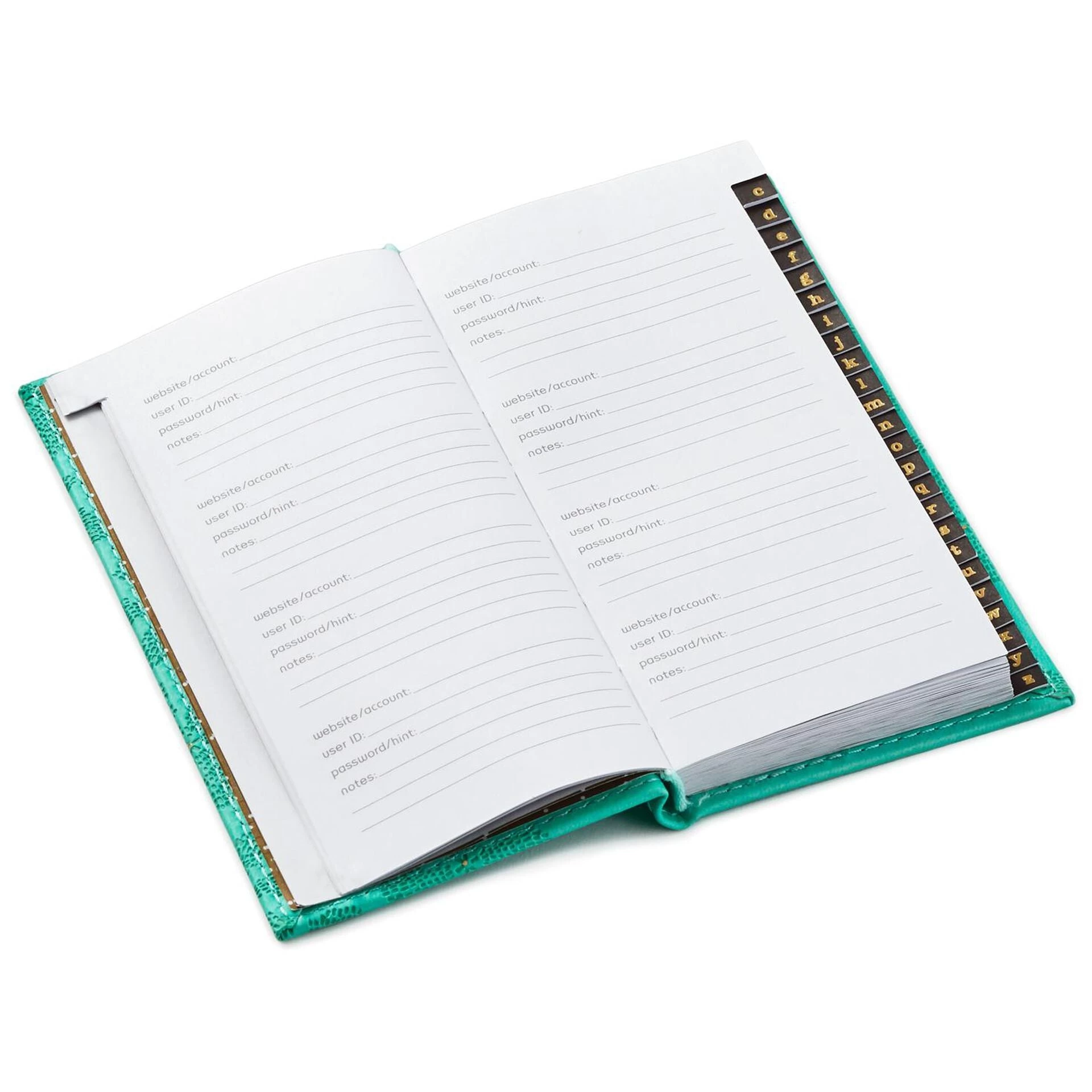 Save yourself from a forgetful memory using this password keeper book to store access information for all your online accounts, phone, email and favorite websites. Its hardbound cover is made of simulated leather and features a textured floral design with gold foil accents. Inside, approximately 104 pages and letter tabs help you organize your logins and passwords and find them easily, while attractive polka dot end sheets give a polished, classy look.