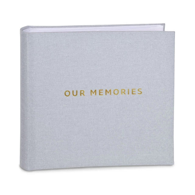 Share and relive life’s special moments when you keep your family pictures in this simple yet elegant photo album. Covered in a neutral, light gray fabric with printed gold foil lettering, this book is the perfect way to store treasured memories from holidays to everyday. Each of the 100 pages holds two 4×6 photos and includes lines for journaling.