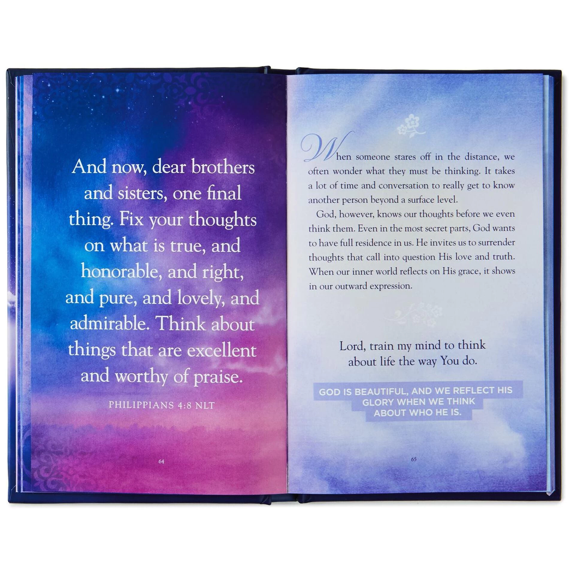 This trusted bedside table companion offers readers a way to reflect on God’s comforting promises, his care and his goodness, while preparing themselves for a good night’s sleep. Filled with 100 Bible verses, this therapeutic book allows one to release the day’s worries to God right before bedtime each night.