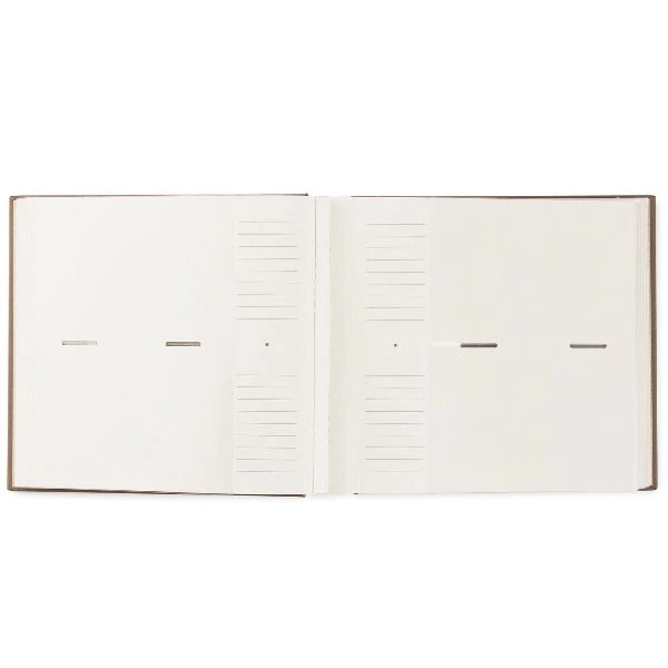 - Hardback photo album features a scroll heart design laser-etched on wood paneling.