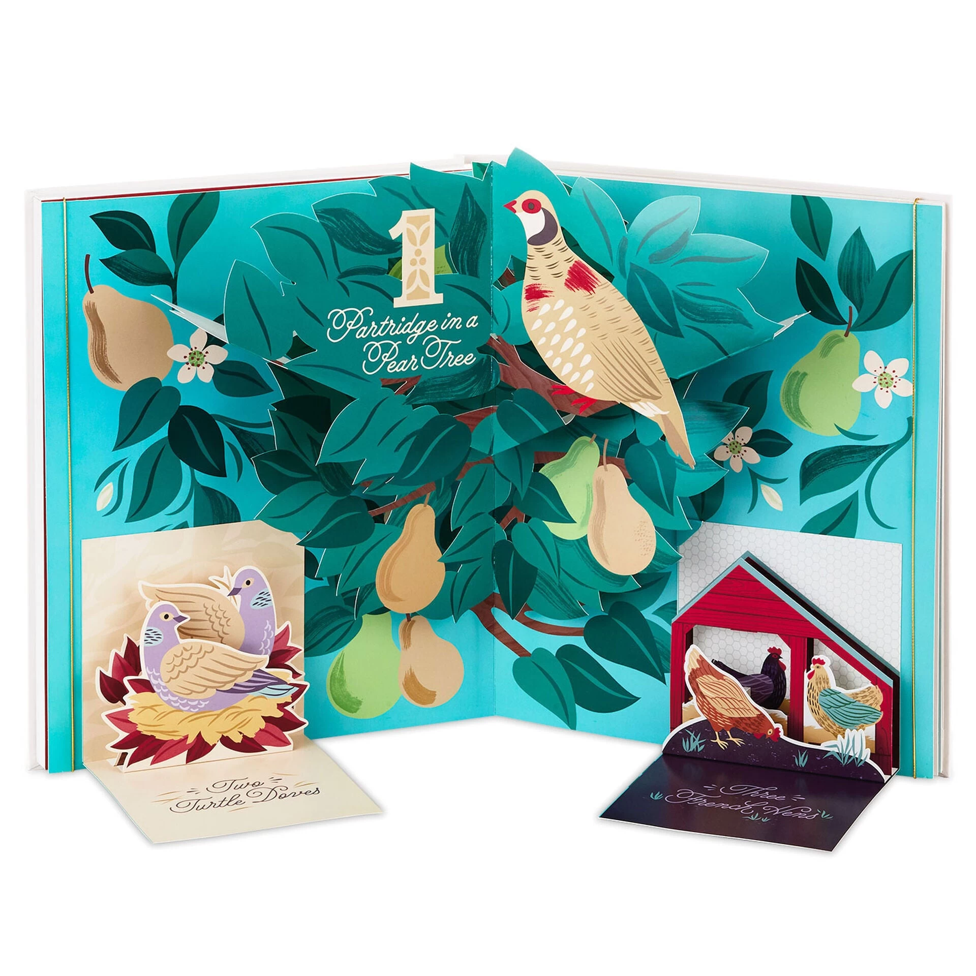 - “The 12 Days of Christmas” pop-up book features intricate, laser-cut illustrations and music. Slide switch to hear either of two coordinating music arrangements.