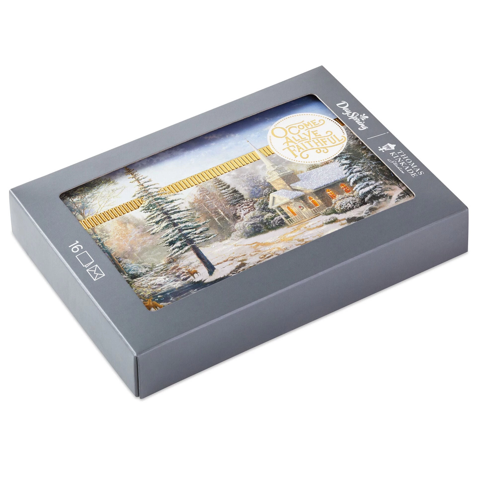 Religious boxed Christmas cards feature a snowy country church scene by Thomas Kinkade Studios with glitter and shiny gold foil accents. DaySpring cards include a Bible verse from Numbers, and coordinating designed envelopes lend the perfect finishing touch. This multipack of holiday cards is perfect for sending season’s greetings to friends, family and loved ones.
