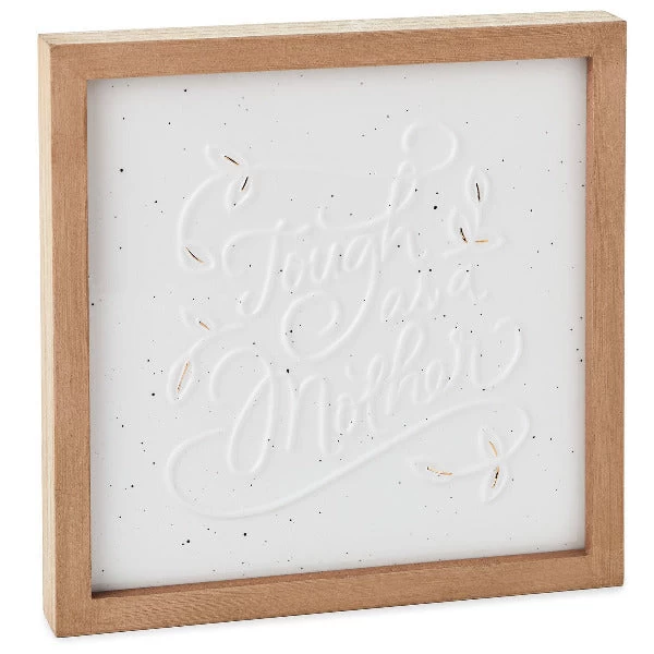 Remind mom that she’s got this simply because she’s one tough mother. This wood framed sign features an embossed script message on speckled white ceramic with gold foil accents. Celebrate mom with this sign she can hang on a wall in her home or office. Ceramic sign is a perfect gift for Mother’s Day or her birthday.